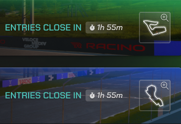 <mark style="background-color:green;">**Open**</mark> <mark style="background-color:green;"></mark>*<mark style="background-color:green;">(Entries Close In)</mark>*<mark style="background-color:green;">**:**</mark> These tracks are available for new cars to join, as long as they have met the level and entry requirements. Note the countdown timer, as the status will change when time expires.